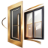 Арочная перегородка с золотым алюминиевым профилем и прозрачным стеклом